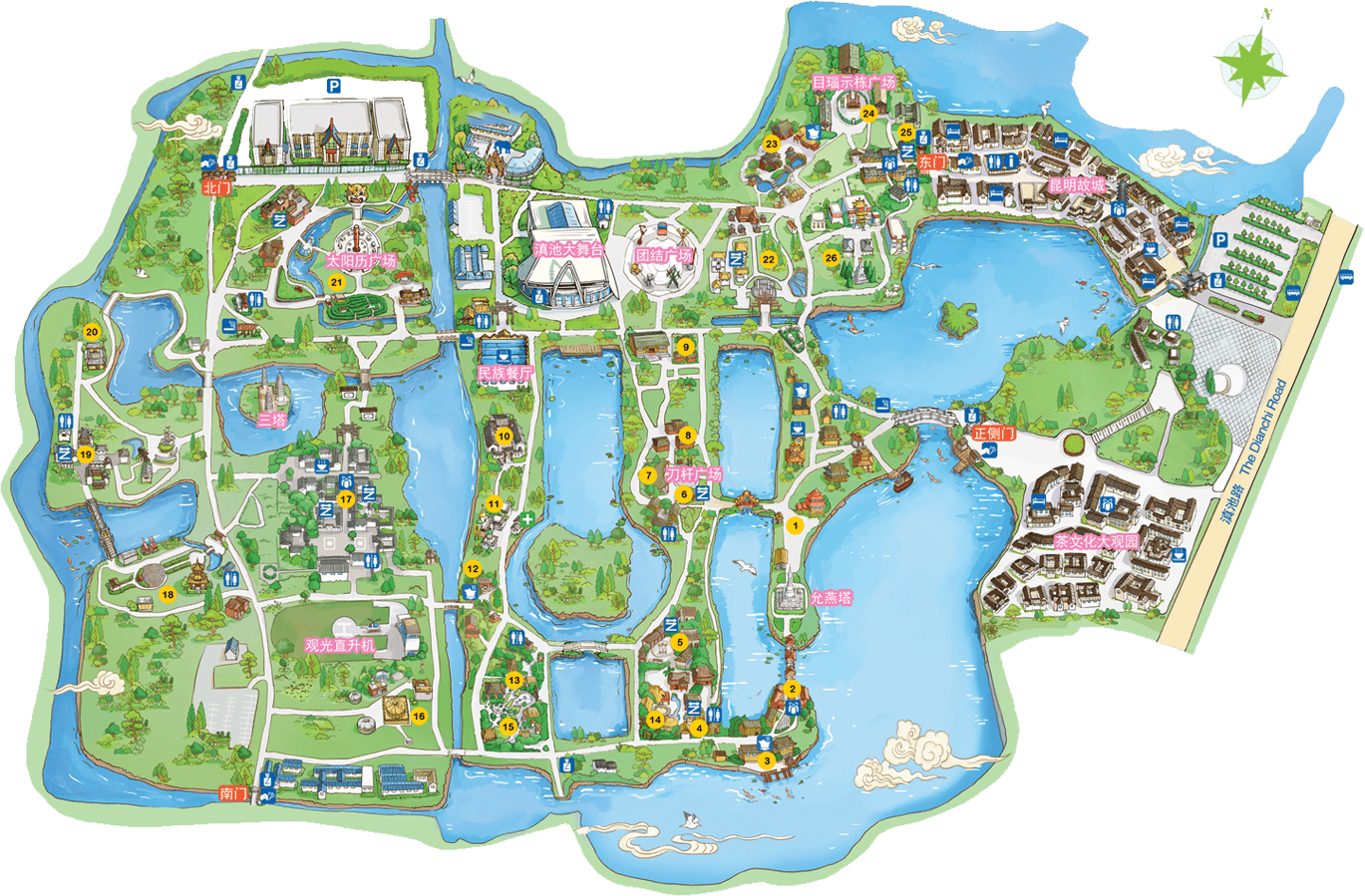 哈尼族是我國西南邊疆歷史悠久的農耕民族,人口約130余萬,主要居住在云南省紅河、元江、瀾滄江流域的無量山區(qū)和哀牢山區(qū)。哈尼寨占地15畝,展現了最具有代表性的蘑菇房和愛尼母子房,日月廣場;有表現哈尼族關于魚生萬物傳說的大型浮雕,有表現哈尼族遷徙傳說的圖騰柱;有體現生產生活的磨房、龍巴門、秋千場、梯田;寨神樹和祭石表現了哈尼族“萬物有靈、多神崇拜”的宗教信仰。哈尼傳統(tǒng)的節(jié)日有“年首扎勒特”、“苦扎扎”...