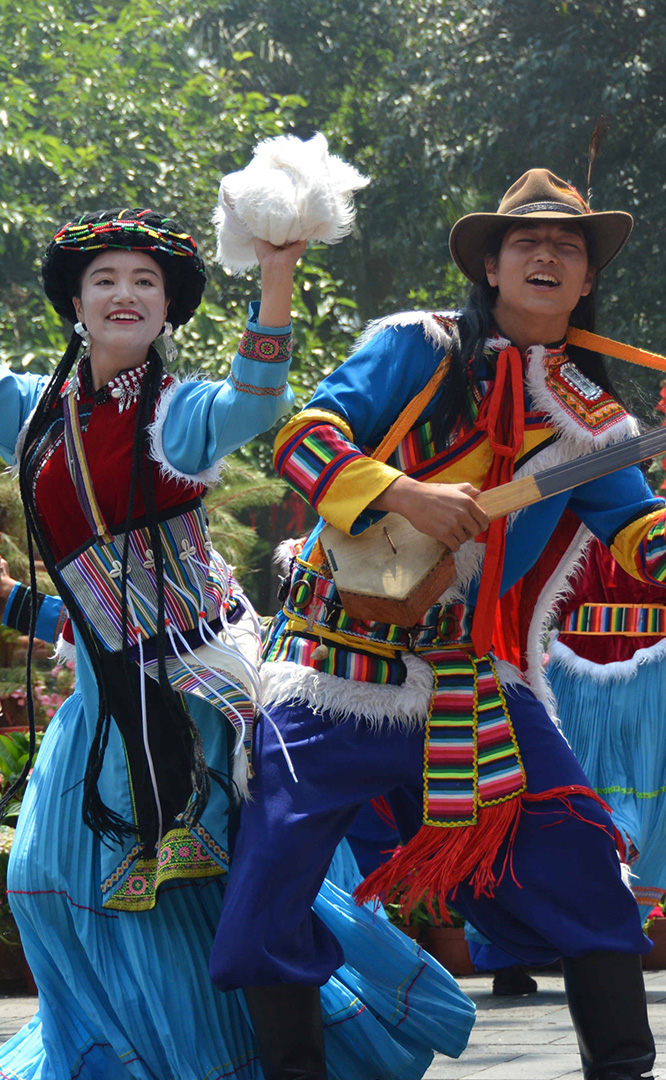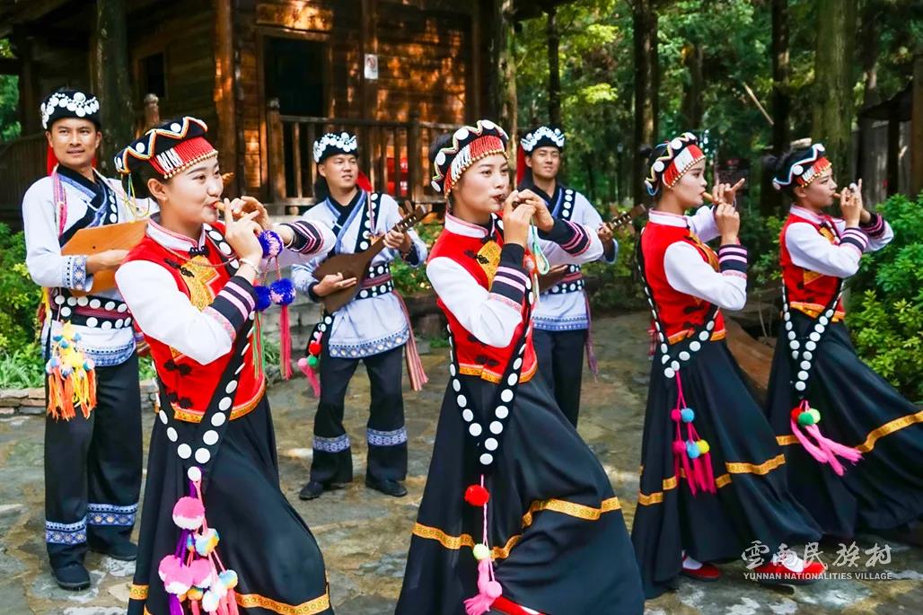 彝族在云南境內約471萬人,是省內人口最多、分布最廣的少數民族,主要聚居在金沙江、元江流域和哀牢山、無量山腹地。彝族是一個能歌善舞的民族,民間打歌、跳樂之風盛行,大三弦、跌腳舞久負盛名。火把節(jié)是彝族最具特色的民族節(jié)日。彝族村占地50余畝,三虎浮雕墻與虎頭內祖師形象表現了彝族虎鷹文化。太陽歷廣場圖騰柱上有太陽、虎、火和八卦圖形象,周圍環(huán)繞著10個朝向不同的月球造型,外圓周有12生肖石雕。依山而建的“...