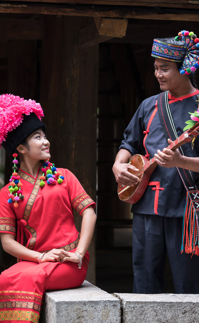 云南的布依族人口近5.5萬人,主要聚居于曲靖、文山、紅河幾個州、市的10余個縣境內,其族源歸為古代“百越”,曾有過“謝蠻”、“仲家”等稱代,是百越族系中駱越人的一支。農耕民族,以農歷紀年,物產豐富,自然條件較好;有語言,通行漢文,文學興盛,歌舞升平,民間信奉“萬物有靈、多神主宰”的原始宗教,代表節(jié)慶為祭社神節(jié)(六月初六)。布依族寨子傍水而建,兩幢民居忠于民間的構建方式,實現了邛籠系與板屋系建筑手法...